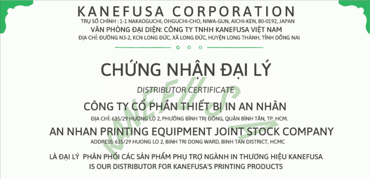 Kanefusa là công ty sản xuất dao cắt lâu đời của Nhật Bản, thành lập năm 1896. Đây là hãng sản xuất lưỡi dao cắt giấy cho các thương hiệu nổi tiếng của Nhật Bản như Nagai, ITO, JMC, Tại Việt Nam, công ty cổ phần thiết bị in An Nhân là nhà phân phối chính thức của KANEFUSA chuyên về sản phẩm dao cắt cho ngành giấy, với đủ các kích cỡ chủng loại cho các dòng máy cắt giấy phổ biến tại Việt Nam.